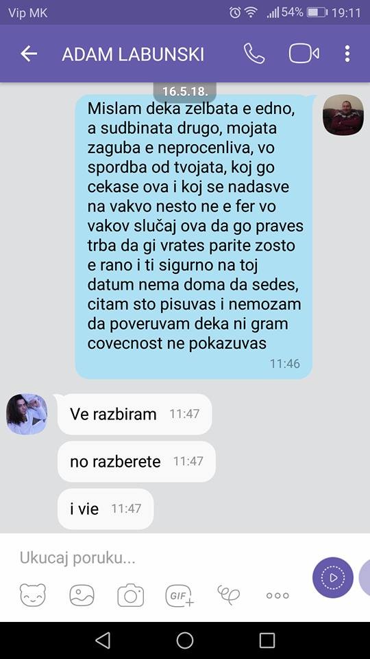 Лабунски за настапот добил капар и сега, иако нема да пее бидејќи момчето починало, не сака да го врати капарот земен од ожалостеното семејство. На социјалните мрежи е објавена и преписка во која пејачот не сака да слушне да го врати капарот бидеќи нему му пропаднал настап. Погледнете што напишал пејачот во таа преписка: