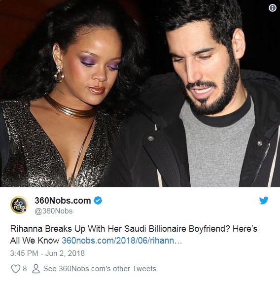 “Тоа беше добра врска, но сега е завршена. Секако, Ријана му го скрши срцето. Тоа е она што таа го прави: ги крши машките срца. Ријана се измори од него. Таа понекогаш е уморна од мажите”, изјавил изворот за овој медиум.
