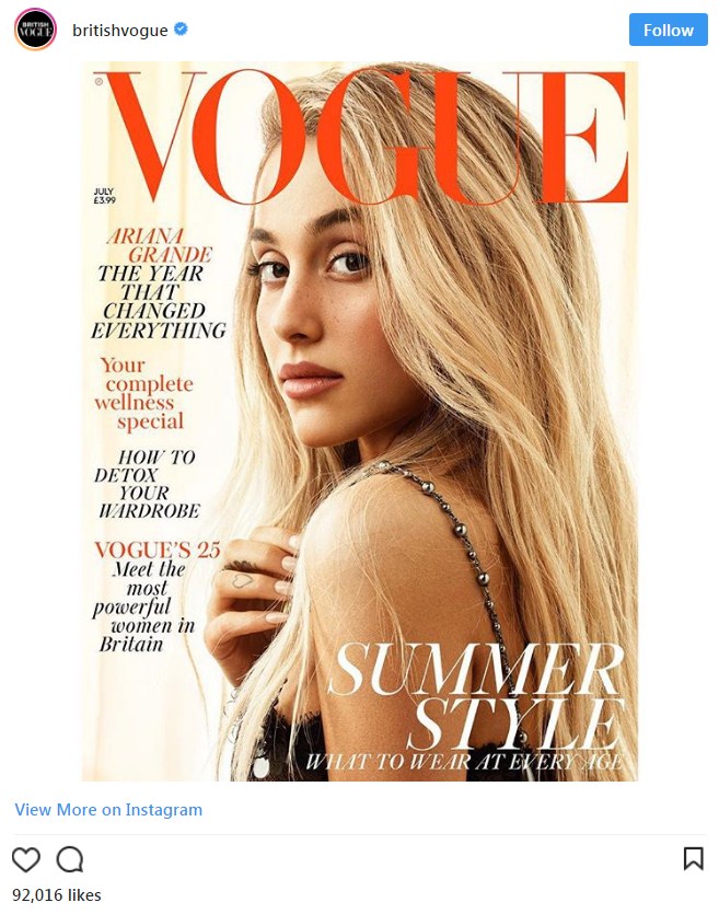 Аријана се присетила на еден непријатен настан, за време на нејзин концерт кој се одржувал во Манчестер, па затоа таа изминатата година ја именувала како виновник за сите промени коишто ѝ се случиле. Таа сега заслужено ги краси насловните страници на “Вог”.