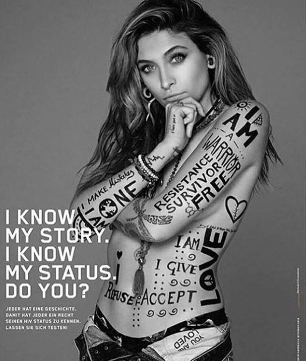 Ќерката на покојниот Мајкл Џексон, позираше топлес за хуманитарни цели. Таа ги покажа бројните тетоважи на нејзиното тело и изјави дека е горда што е дел од кампањата за заболени од ХИВ вирусот.