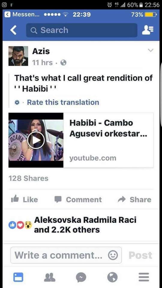 –Така звучи одлична изведба на “Хабиби”-напиша Азис на својот фејсбук профил.