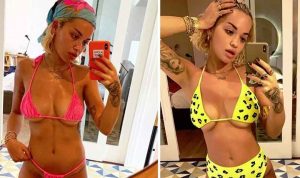 Освен што по кој знае кој пат ги покажа облините, пејачката се пошегува на своја сметка. До фотографијата во жолти бикини на која со црн принт едвај и се покриени градите напиша: „Очигледно и понатаму не знам кој број на градник носам“.