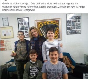 -Горда на моите сонциња. Две први, една втора и една трета награда на Државниот натпревар по хармоника.