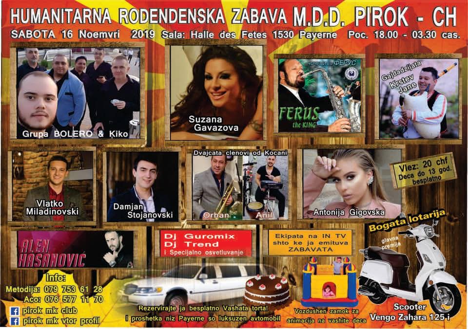 Голема хуманитарна забава во Швајцарија, организира Македонското друштво „Пирок“. Насобраните парични средства ќе се донираат на повеќе лица од различни краеви на Македонија.