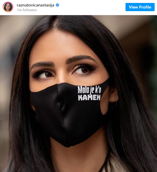 Таа на Инстаграм профилот сподели фотографија на која позира со црна маска на која со бели букви се испишани стиховите од нејзината песна „Ране“.