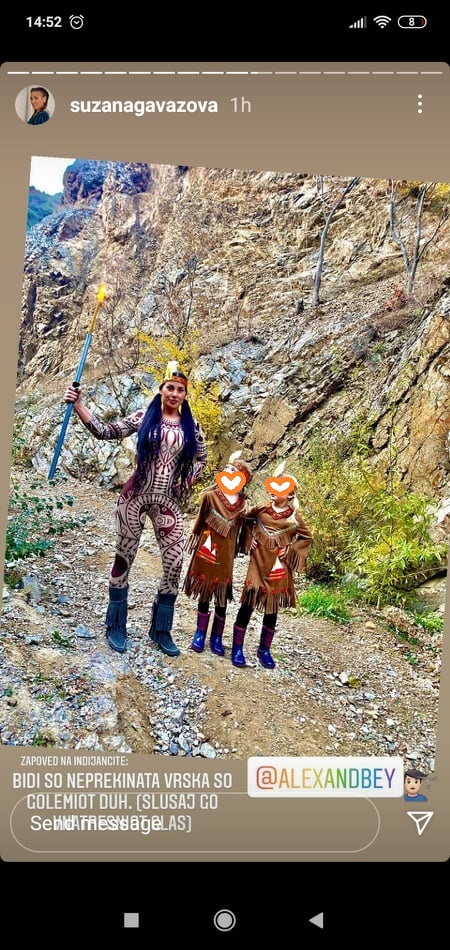 -Отсекогаш сум се восхитувала на индијанските обичаи и традиција од која може многу да се научи за духовната и силната поврзаност со природата. Да се искаже благодарност кон природата, да се слави животот. Преземи одговорност за своите дела (не ги обвинувај другите), пишува Гавазова и додава дека сигурниот став и позитивната мисла треба да бидат се’.