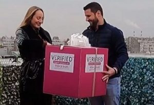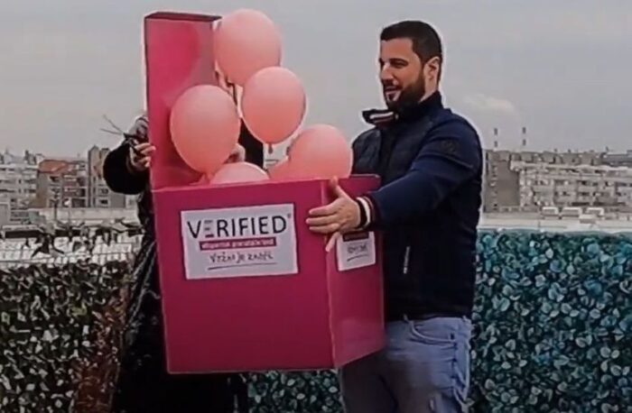 На крајот, Џогани зеде ножици, ја пресече лентата, а од кутијата излегоа розови балони, што значи дека Луна и Марко чекаат девојче.