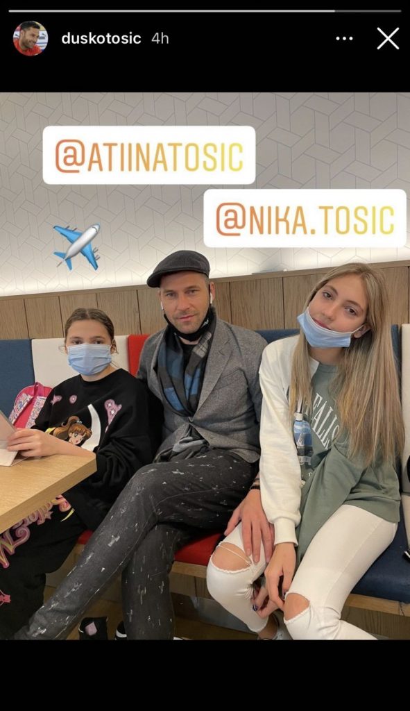 Додека пејачката Јелена Карлеуша остана во Србија поради деловни обврски, нејзиниот сопруг Душко Тошиќ замина на одмор со своите наследнички Атина и Ника.