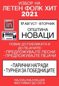 Сателитската ИНТВ ,модно студио Пикси и Општина Новаци и оваа година традициниално го избираат новиот летен хит за 2021 година.Оваа година ќе учествуваат популарни фолк пејачи од Македонија ,до тогаш публиката може да предложува песни кој оставиле впечаток оваа и минатата година и заедно да ја одбериме најпопуларната песна за оваа година .