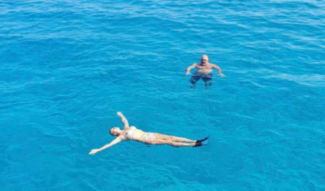 Тие двајца се закотвија на островот Крф во изминатите неколку дена, а ги посетија и блиските места. На Лепа Брена очигледно и се допаднаа околните помали острови Паксос и Антипаксос, кои припаѓаат на Рајските Острови каде одлучи да плива.