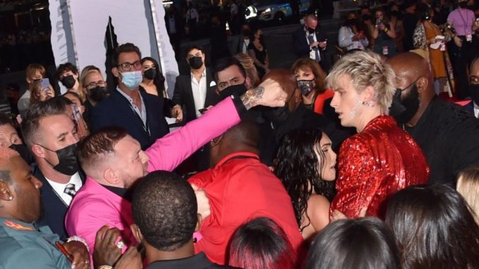 Имено, се појавија бројни снимки и фотографии кои го покажуваат конфликтот помеѓу Конор Мекгрегор и глобално познатиот рапер Машин Ган Кели (вистинско име: Колсон Бејкер). Осигурувањето мораше да ги раздели двајцата актери, а тие се и најзаслужни што целата ситуација не ескалираше уште повеќе.