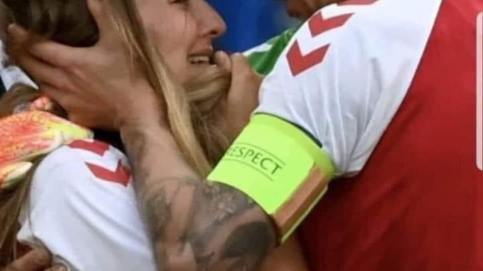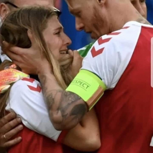 Плус, тој одвои време да излезе на трибините и да понуди многу потребна поддршка на сопругата на Ериксен, која беше шокирана кога го виде нејзиниот сопруг и татко на нивните две новородени деца како се борат со смртта. Како што е прикажано на фотографијата.