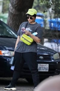 29-годишната пејачка била уловена во друштво на пријателите, а на себе имала едноставна тренерка, обична маица, а лицето го сокрила со очила за сонце и капа.