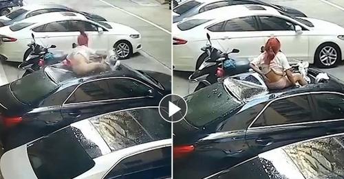 Несреќната љубовница била интимна со својот партнер во моментот кога се лизнала од работ на балконот на стан во Тајпеј и паднала врз паркиран автомобил. Инцидентот, кој се случил на 5 месецов, е снимен благодарение на надзорната камера и покажува прилично непријатен момент, одноно кога жената паѓа врз автомобилот паркиран пред зградата.
