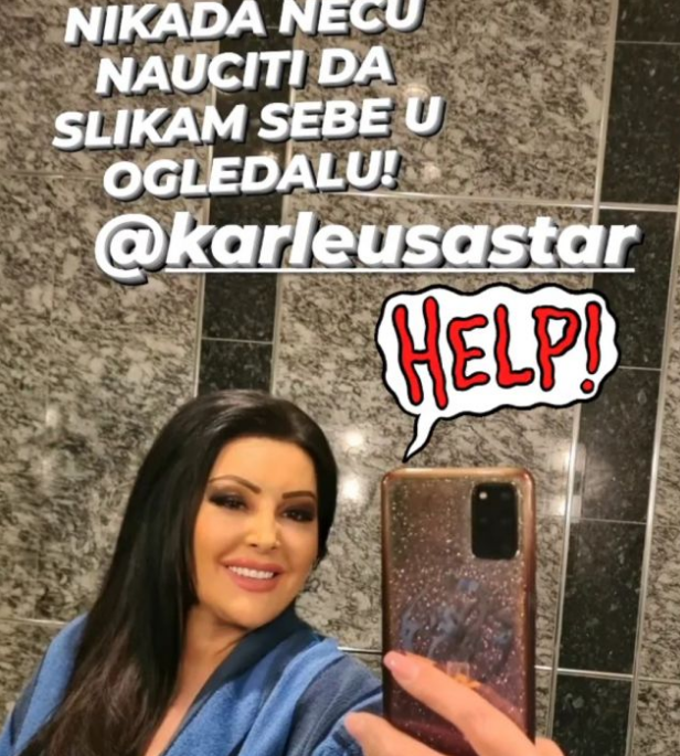– Никогаш нема да научам да се сликам во огледало. Јелена Карлеуша, помош – напиша пејачката.