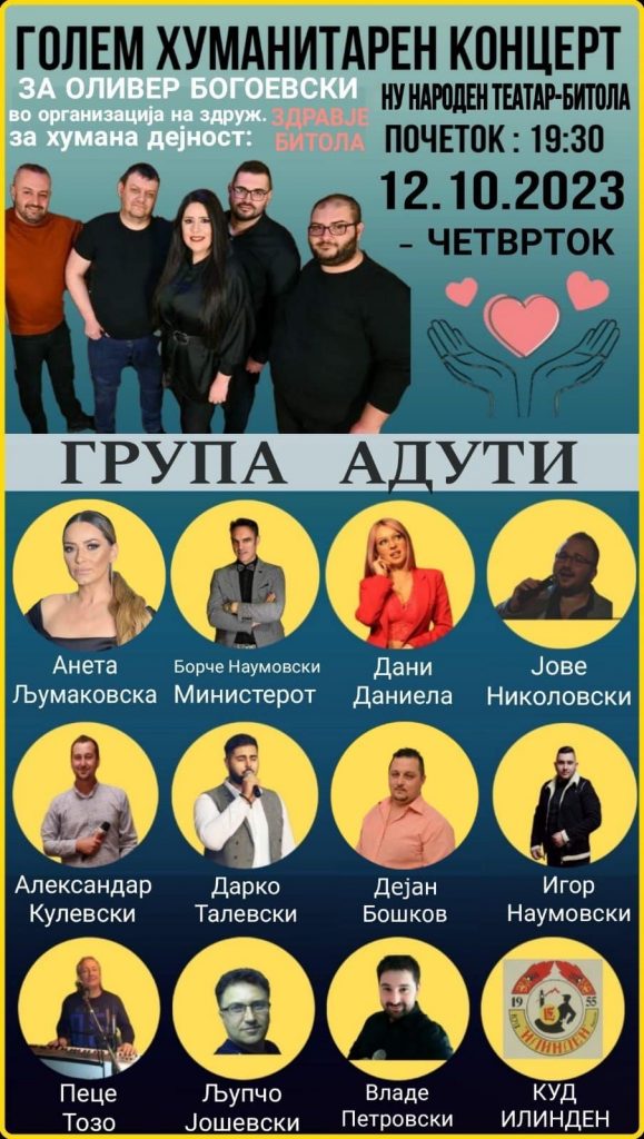 Додека нашите пејачи се отповикуваат на секој повик и пејат на хуманитарни концерти ,општините фрлаат огромни пари за Српските пејачи ,орпавданието е носеле публика ,но што ввсушност има општината од тоа кога влезот е беспатен!!? Како и да е на 12 ти Октомври ве покануваме сите заедно да помогнеме Оливер Богоевски ,еве кои пејачи зедоа учество..