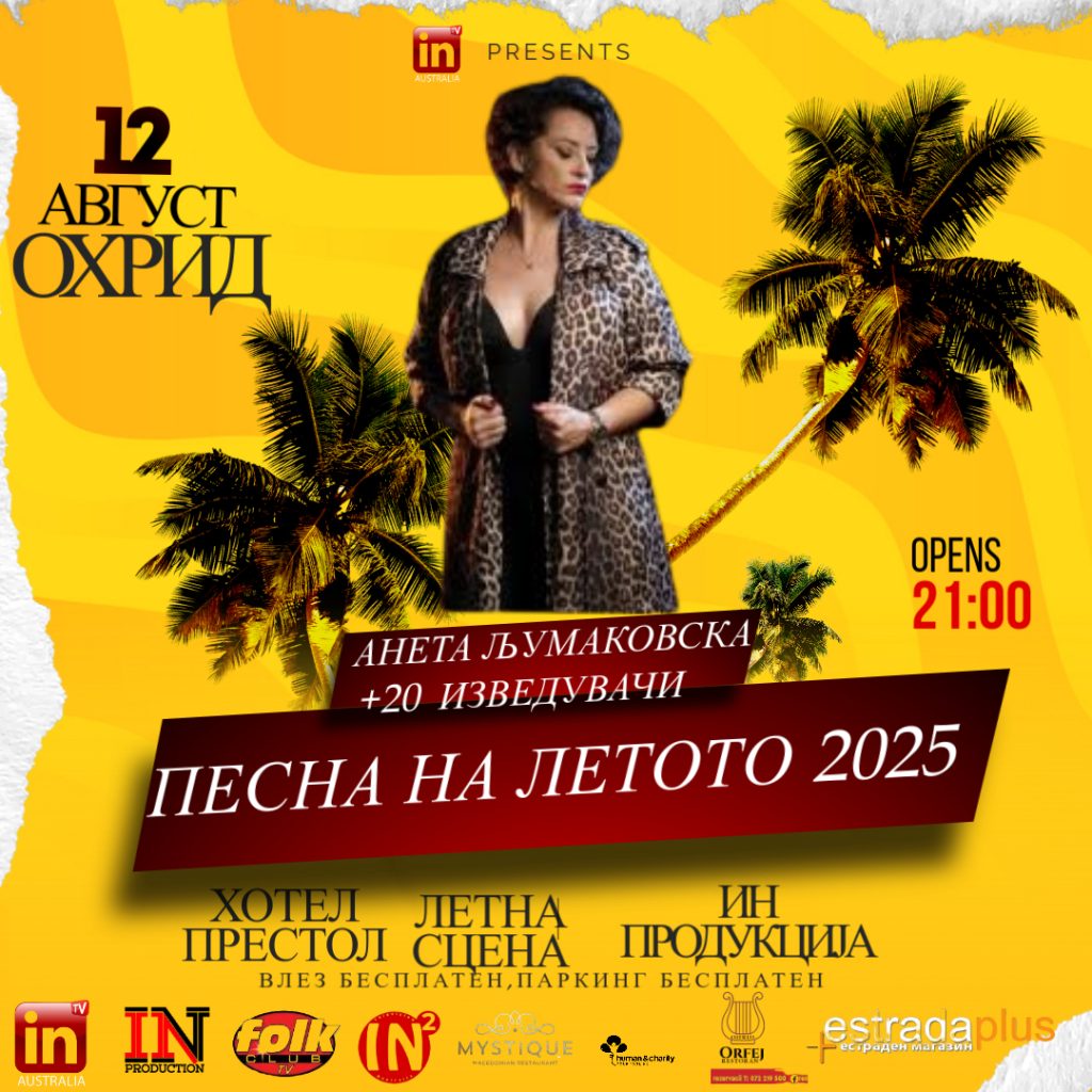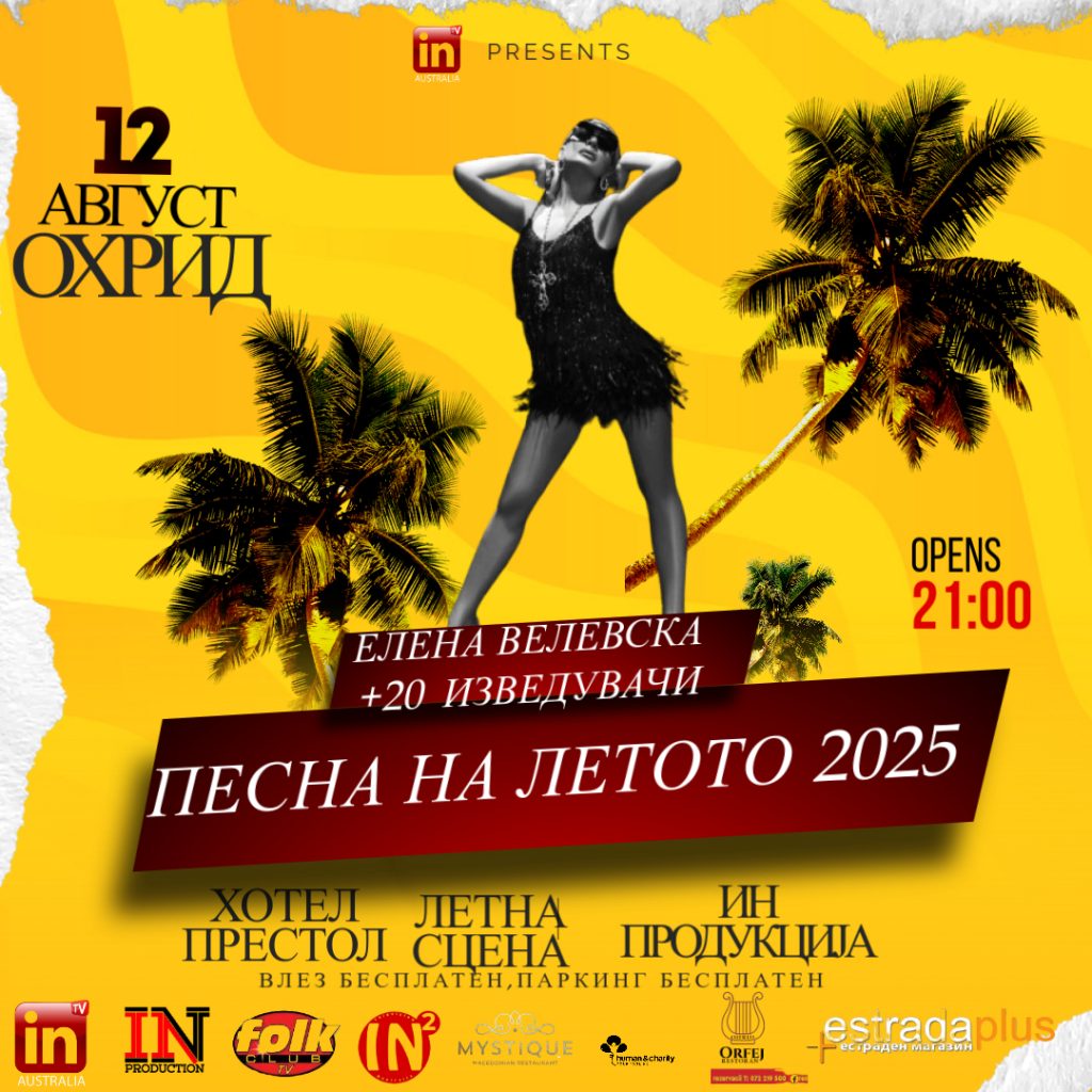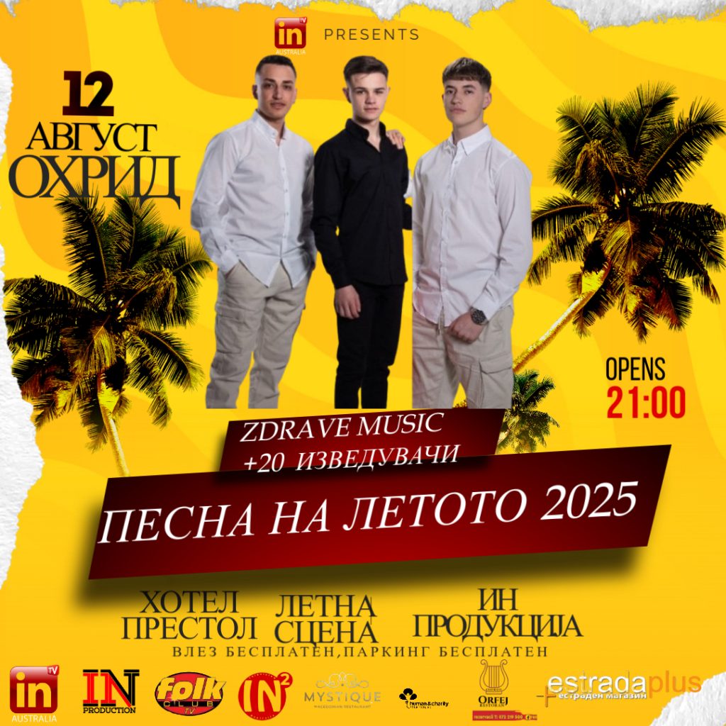 Ова лето, Охрид повторно ќе биде домаќин на еден од најочекуваните музички настани во земјата – традиционалниот избор на Песна на Летото, што ќе се одржи на 12 август на летната сцена на ИН Продукција, пред хотелот Престол.